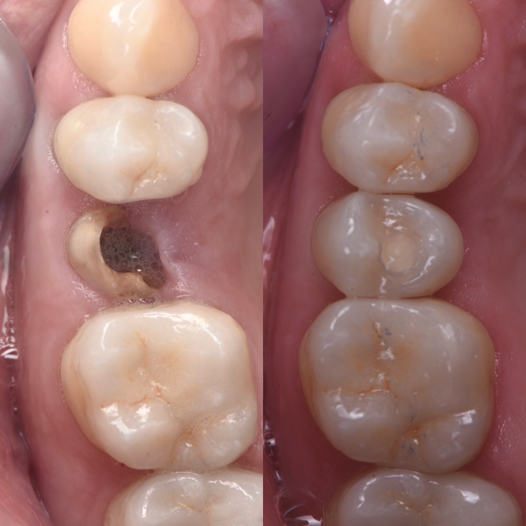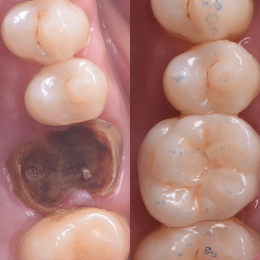 En secteur postérieur : Nous pouvons remplacer une dent postérieure (molaire) par un implant et sa couronne par dessus.