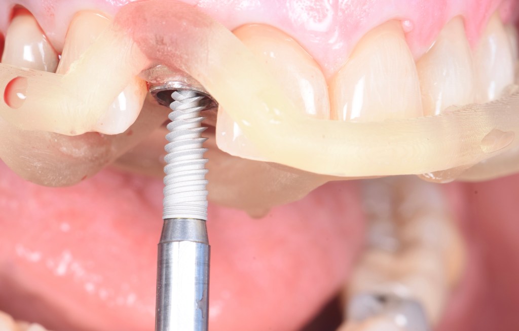 En secteur antérieur : Le remplacement d’une incisive est un acte très technique. Cela nécessite une planification rigoureuse. En effet, l’implant devra avoir une émergence juste derrière la dent, de manière a obtenir un rendu esthétique parfait. C’est pour cela qu’un guide chirurgical sera toujours utilisé afin d’avoir une précision la plus haute possible. Un aménagement gingival voire osseux est également souvent nécéssaire.